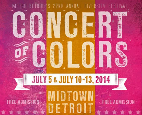 The Concert of Colors is metro Detroit’s free annual diversity music festival. It is produced by the Arab American National Museum with partners Detroit Symphony Orchestra, Detroit Institute of Arts, Charles H. Wright Museum of African American History, ACCESS, Midtown Detroit Inc. andUniversity of Michigan – Detroit Center. The goal of this five-day festival is uniting metro Detroit’s diverse communities and ethnic groups by presenting musical acts from around the world. Over its 22-year history, the festival has become a beloved highlight of metro Detroit’s summer festival season, and one of the few free-admission music festivals remaining locally.