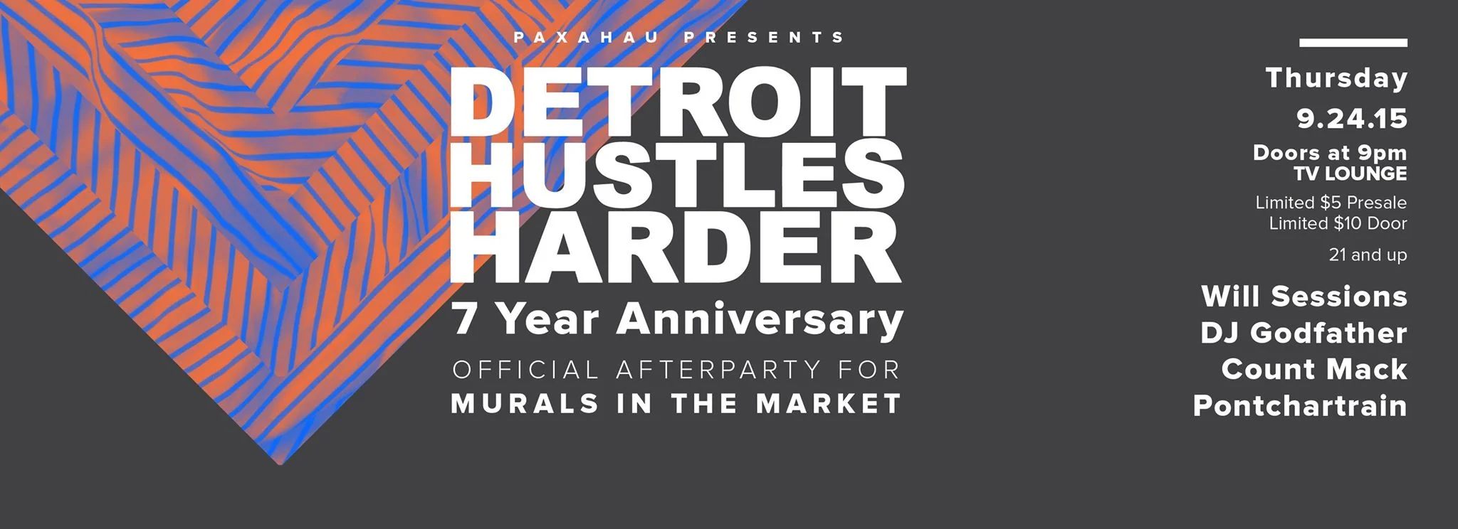 Join us for the Detroit Hustles Harder 7 Year Anniversary x Murals in the Market after party on Thursday, September 24th at TV Lounge!