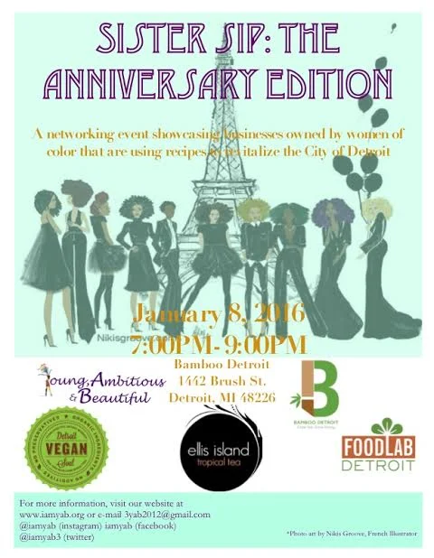 There is a resurgence of business synergy taking place in Downtown Detroit, bringing in a new attraction of revenue as well as the types of consumers. With Y.A.B. being an advocate for women of color stimulating the business economy, similarly to our kick-off Sister Sip event, we would like to use this event to be an inspirational resource to show that businesses opened by women of color are thriving as well as provide a networking opportunity for Detroit women! The food industry is on the rise in the business realm of Michigan and this event will showcase how women are utilizing recipes to revitalize the City of Detroit.